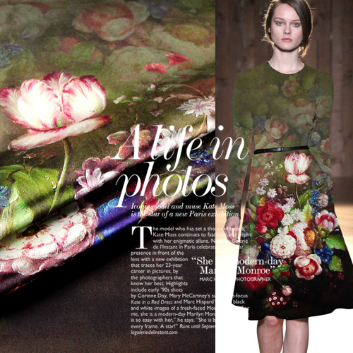 重磅数码喷绘印花真丝弹力丝绸缎服装 玉兰映雪连衣裙