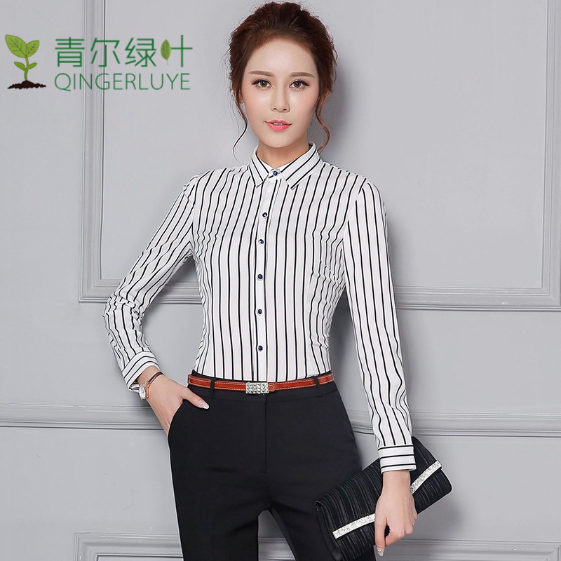 青尔绿叶 春秋职业装修身蝴蝶结长袖纯色衬衣女衬衫百搭上衣工装